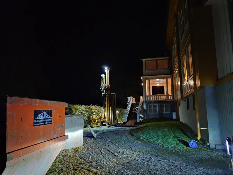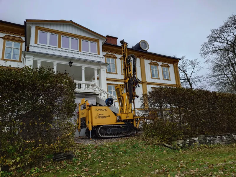 1200 meter bergvärme till Hillringsbergs Herrgård November 2023 – ingrävning samt montering av samlingsskåp på vägg.